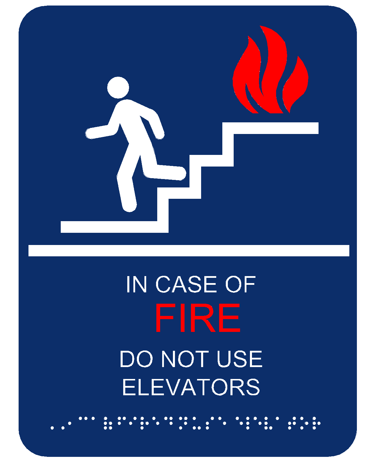 ADA Compliance: All signage complies with the United States ADA regulations. The lettering is easily legible, with a minimum size of 5/8 inches in height, and high contrast color scheme, and a standard one-inch distance between iconography and lettering. Additionally, Braille letters have a clearance of 3/8 inches from all sides.